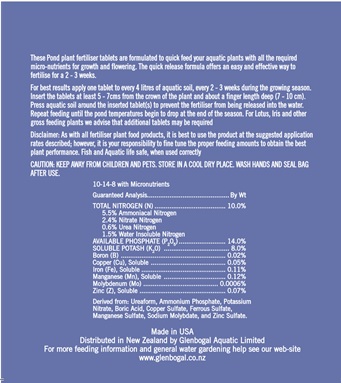 These pond tablets are formulated to quick feed your aquatic plants with all the required micro-nutrients for growth and flowering. The quick release formula offers and easy and effective way to fertilise for 2 - 3 weeks